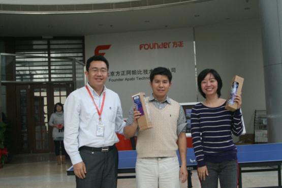 為了強健大家的體魄,加深同事之間的溝通與交流,10月下旬方正阿帕比首屆乒乓球比賽火熱開幕。經(jīng)過9個比賽日的激烈爭奪,方正阿帕比首屆乒乓球賽圓滿落幕,最終名次如下: