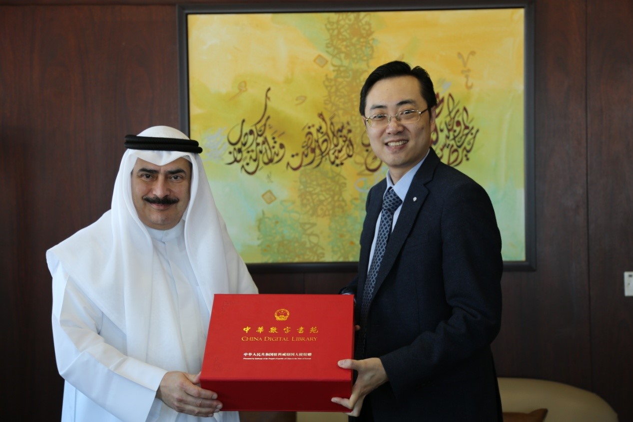 1121日,駐科威特使館向科威特國家圖書館贈送電子圖書。駐科威特使館臨時(shí)代辦趙亮、科威特國家圖書館館長卡米勒出席贈書儀式。