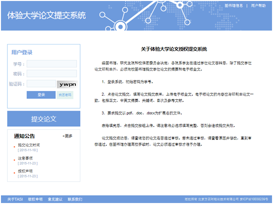 1、 博士后論文提交:新版論文提交系統(tǒng)不僅支持學(xué)士、碩士、博士的論文提交,還增加了博士后的論文提交功能,并且針對(duì)博士后論文元數(shù)據(jù)特點(diǎn),專門設(shè)置了博士后的提交單和編目信息。